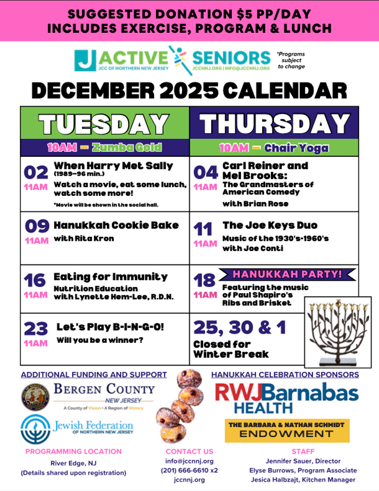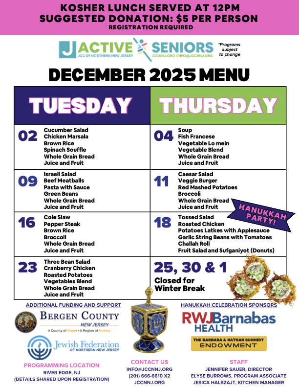 This program is supported by Jewish Federation of Northern New Jersey and the Bergen County Division of Senior Services. NOTE: ALL programming takes place in-person ONLY.
